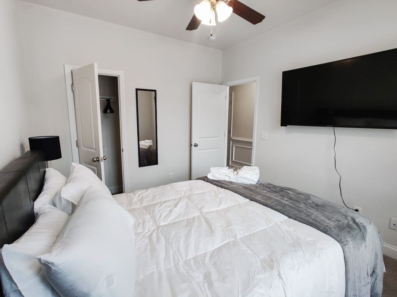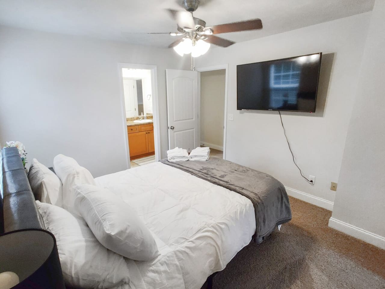 1400 sq ft house, 2 bedrooms with ensuite bathrooms and 1 bonus bedroom with private bathroom and plenty of space. Large 55" flat screen TV with full motion mounts in every bedroom and the great room. Full access to all house amenities including laundry, kitchen, and living room. 3 minutes from Super Walmart, grocery, and countless food spots. 30 seconds from the lowest priced gas within 100 miles. 5 minutes from the mall, movies, Augusta National (Masters), Fort Gordon, and much more!