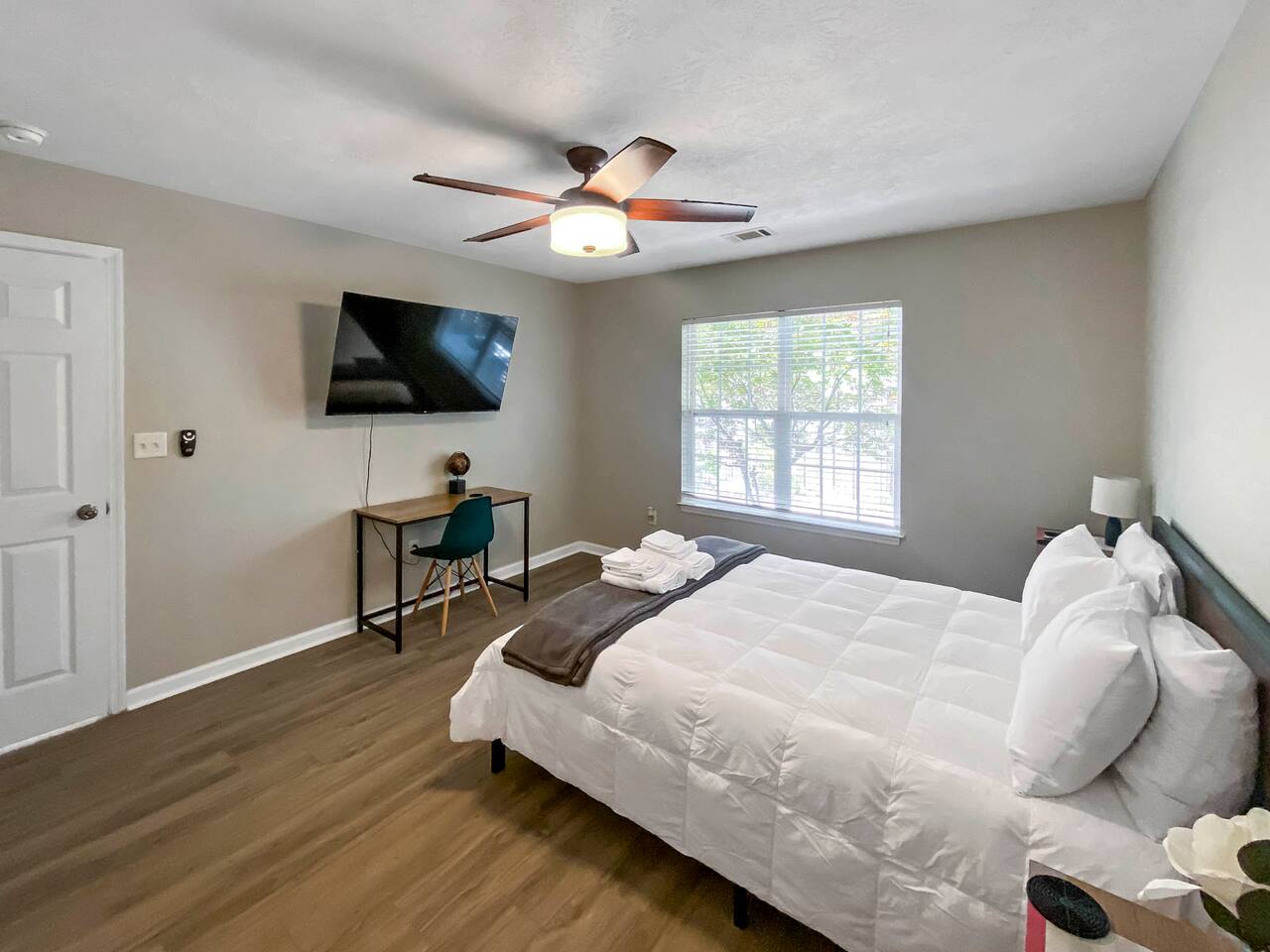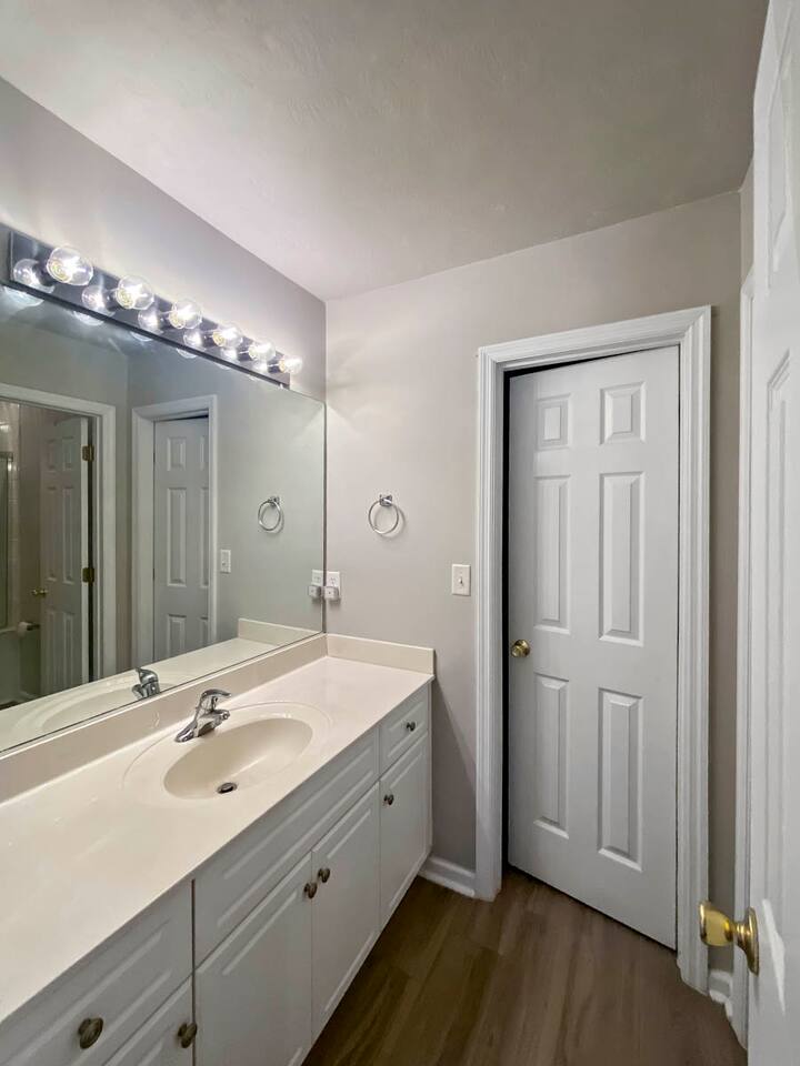 1400 sq ft house, 1 bedroom with ensuite bathroom and 1 bedroom with private bathroom and plenty of space. Large 55" flat screen TV with full motion mounts in every bedroom and the great room. Full access to all house amenities including laundry, kitchen, and living room. 3 minutes from Super Walmart, grocery, and countless food spots. 30 seconds from the lowest priced gas within 100 miles. 5 minutes from the mall, movies, Augusta National (Masters), Fort Gordon, and much more!