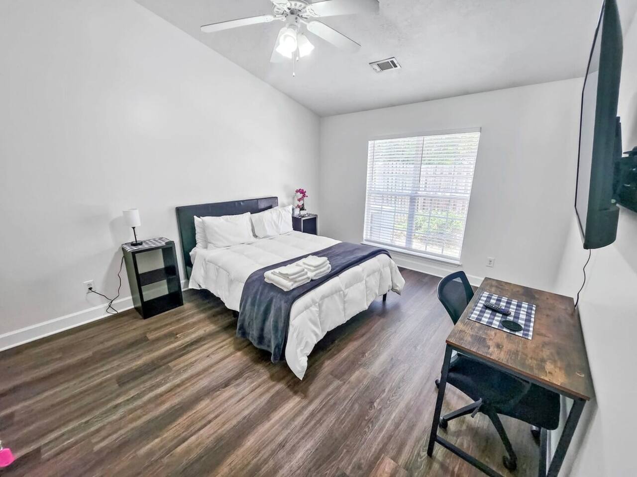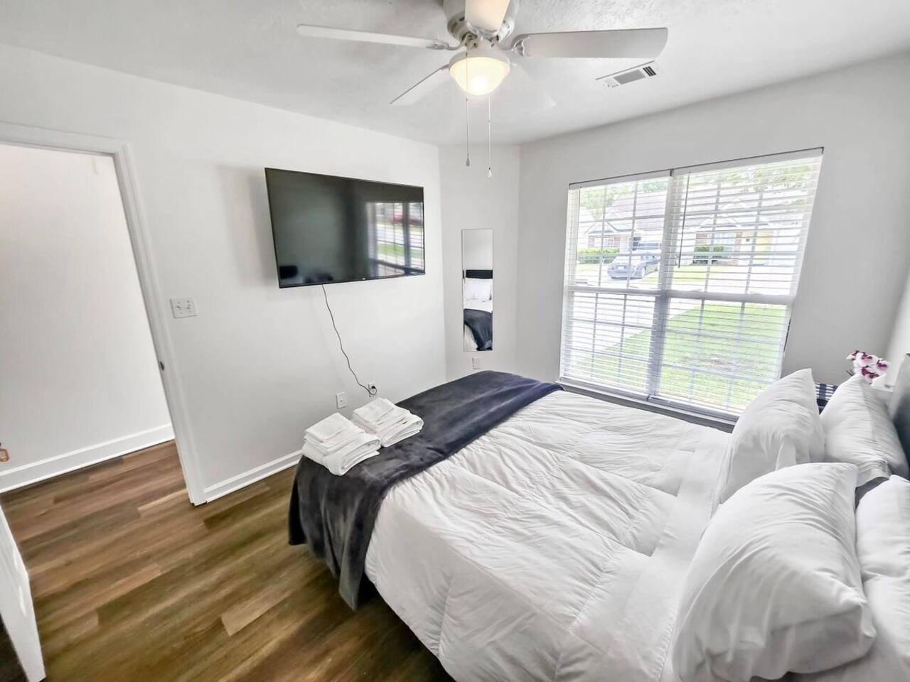 1400 sq ft house, 1 bedroom with ensuite bathroom and 2 bonus bedrooms with private bathrooms and plenty of space. Large 55" flat screen TV with full motion mounts in every bedroom and the great room. Full access to all house amenities including laundry, kitchen, and living room. 3 minutes from Super Walmart, grocery, and countless food spots. 30 seconds from the lowest priced gas within 100 miles. 5 minutes from the mall, movies, Augusta National (Masters), Fort Gordon, and much more!