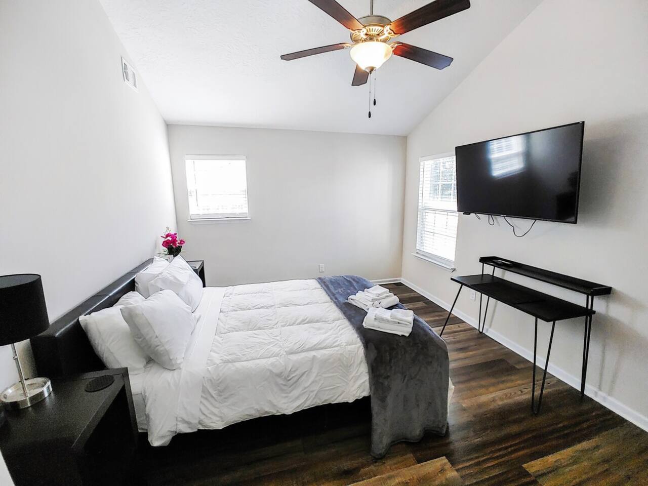 1400 sq ft house, 1 bedroom with ensuite bathroom and 2 bonus bedrooms with shared bathroom and plenty of space. Large 55" flat screen TV with full motion mounts in every bedroom and the great room. Full access to all house amenities including laundry, kitchen, and living room. 3 minutes from Super Walmart, grocery, and countless food spots. 30 seconds from the lowest priced gas within 100 miles. 5 minutes from the mall, movies, Augusta National (Masters), Fort Gordon, and much more!