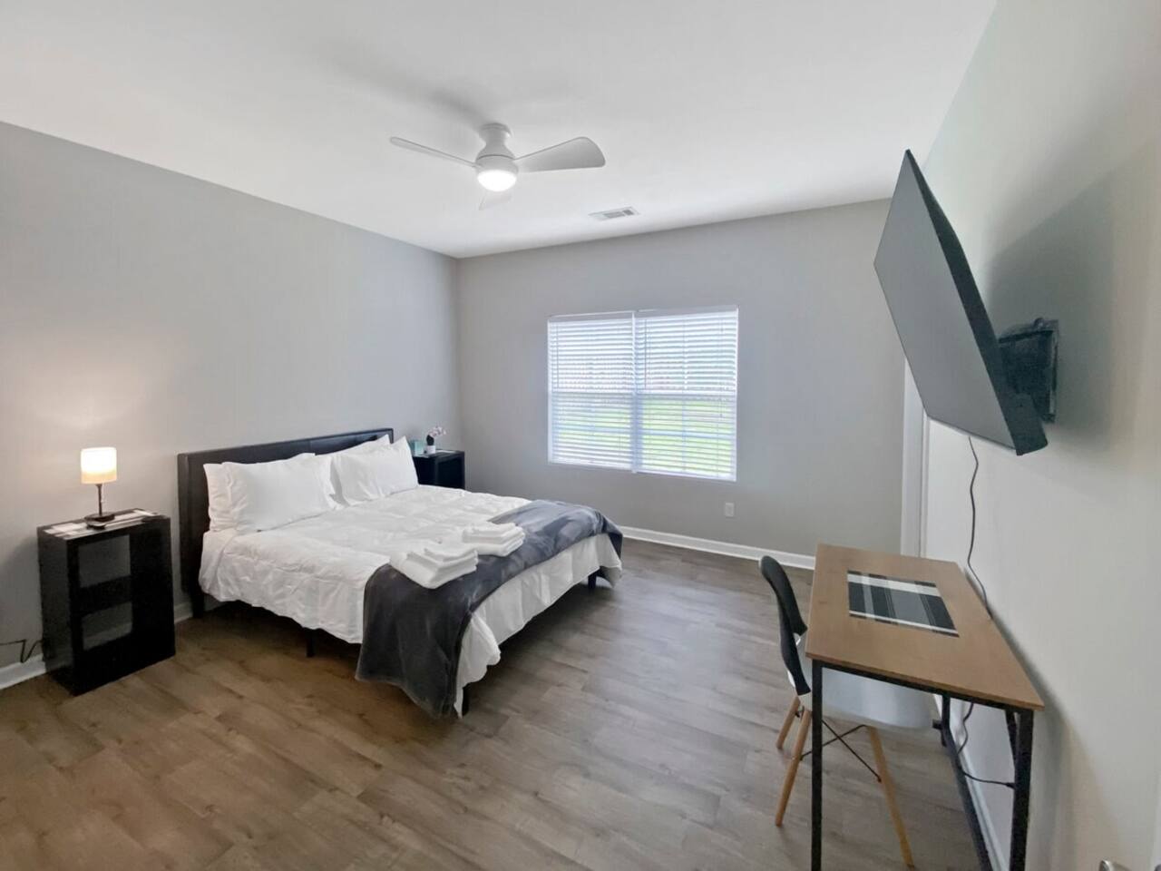 1400 sq ft house, 2 bedrooms with ensuite bathrooms and a 3rd bonus bedroom with plenty of space. Large 55" flat screen TV with full motion mounts in every bedroom and the great room. Full access to all house amenities including laundry, kitchen, and living room. 3 minutes from Super Walmart, grocery, and countless food spots. 30 seconds from the lowest priced gas within 100 miles. 5 minutes from the mall, movies, Augusta National (Masters), Fort Gordon, and much more!