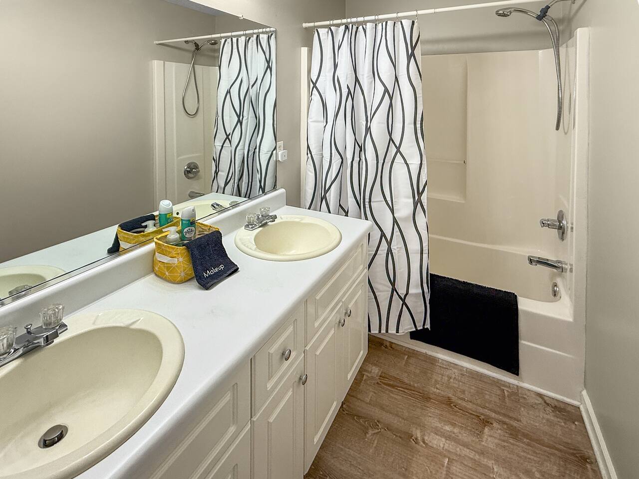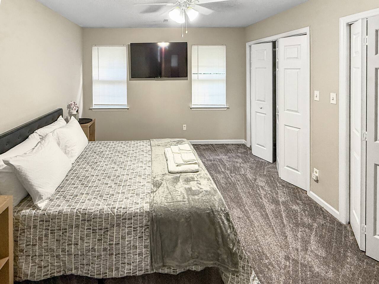 1200 sq ft house, 2 bedrooms with ensuite bathrooms and plenty of space. Large 55" flat screen TV with full motion mounts in the master bedroom and the great room. Full access to all house amenities including laundry, kitchen, and living room. 3 minutes from Super Walmart, grocery, and countless food spots. 30 seconds from the lowest priced gas within 100 miles. 5 minutes from the mall, movies, Augusta National (Masters), Fort Gordon, and much more!