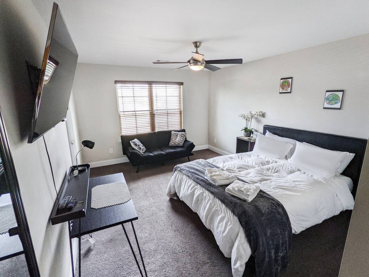 Information about our Suites: 1. The listing you are Booking is a private Suite, with an attached shared bathroom. 2. There will always be Hosts / Guests in the house. 3. The host will always have a small dog on site, if you see them out and about say HI. 4. Other guests may also have pets with them. 5. You have access to all other amenities as shared with other guests. 6. The Suite is also not suitable for infants or children. 7. The suites as well as the house are pet friendly. 8. Only 1 car per Guest Suite is allowed, no street parking. 1. There are cameras covering the driveway and entryway that record only during motion detection. The Driveway camera is used to verify the number of guests that enter the home, to check when guests arrive and leave for cleaning purposes and for the general safety and protection for crimes that may be committed on the property. 2. Parties, events, or gatherings of any kind are NOT ALLOWED without prior approval. Use the Contact Host button to contact us before you book as no refunds will be given if you book and then don't get approved! Approval is contingent upon the following terms: • A refundable $500 deposit must be submitted. Upson satisfactory post-stay inspection, the deposit will be returned minus any damages. • All guests must be included on the reservation guest count, whether or not they stay the night. • Only 1 vehicle will be allowed, due to street parking laws and HOA regulations. All additional guests must arrive via carpool, uber, shuttle, ect. If you misuse our home, you will be charged a $200 fee to pay the HOA fine and $1000 if law enforcement is called. 3. We verify how many guests enter and stay in the home. If you have misrepresented the number of guests on your reservation, you will be charged extra. Please alter your reservation immediately to correct guest counts on your reservation and be charged appropriately. 4. THIS HOUSE IS NON SMOKING. This includes cigarettes, marijuana, and any other substances that create smoke or vapor. If the cleaners arrive and detect a smoky odor of any kind, you will be charged an additional $100 to remove the odor. 5. Street Parking is NOT permitted. If you have extra vehicles, DO NOT park on our grass or line our street with your vehicles. Please park them in a public parking lot elsewhere and carpool to the house. This is a residential neighborhood. If you park vehicles on the street, you may be charged a $100 fee to pay the HOA fine. 6. Our home is thoughtfully furnished for your comfort. Please treat our things as if they are your own. You are responsible for all furnishings during your stay. If you break, misplace, throw away, steal, or permanently stain anything, you WILL be charged for it, and we inventory everything before and after every stay. • Our white towels are for drying your bodies only. • Please use our makeup towels for makeup removal. • Eat and Drink in the bedrooms at your own risk. • If you have kids, we recommend using your own blankets, as our white comforters are expensive to replace.